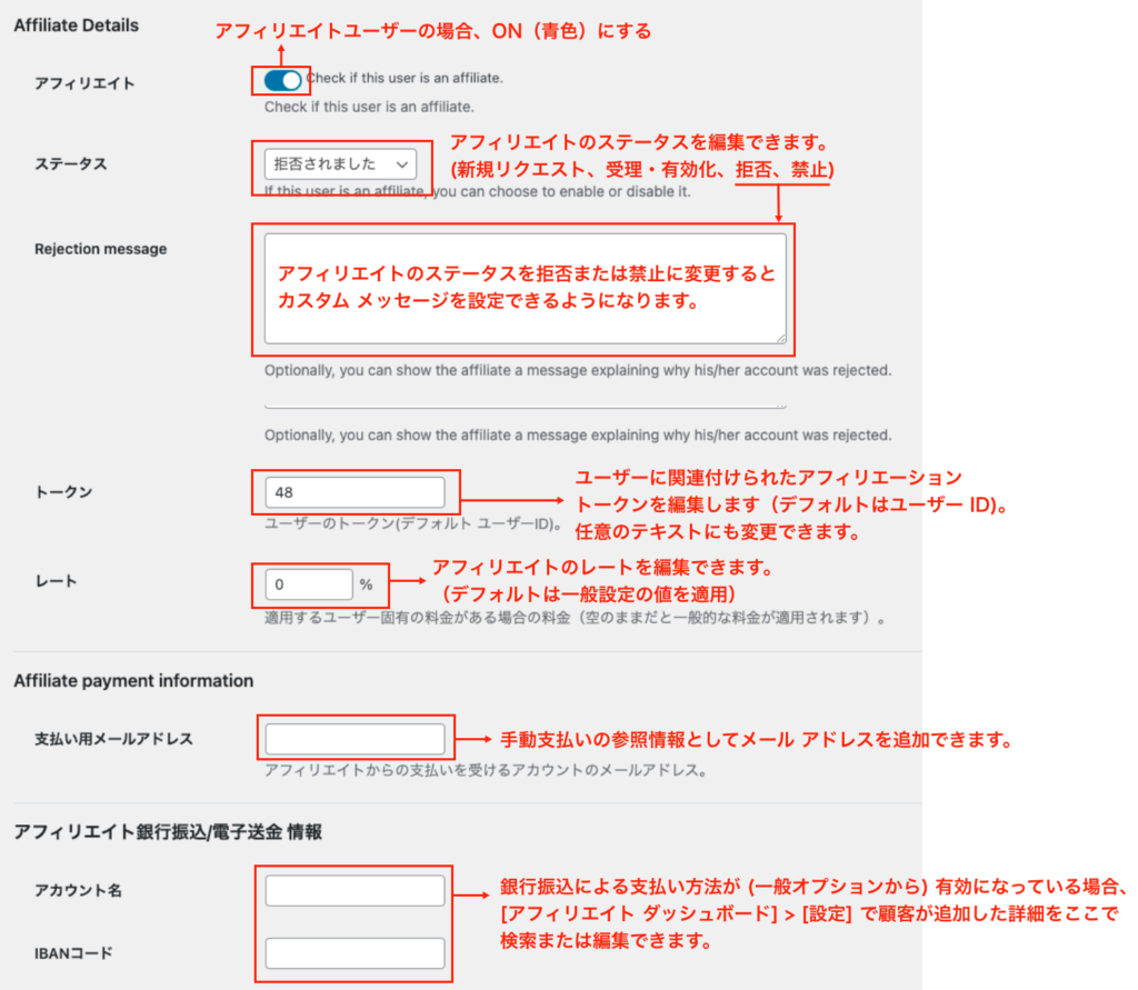 「Affiliate Details」のセクションが見つかるまで下にスクロールします。